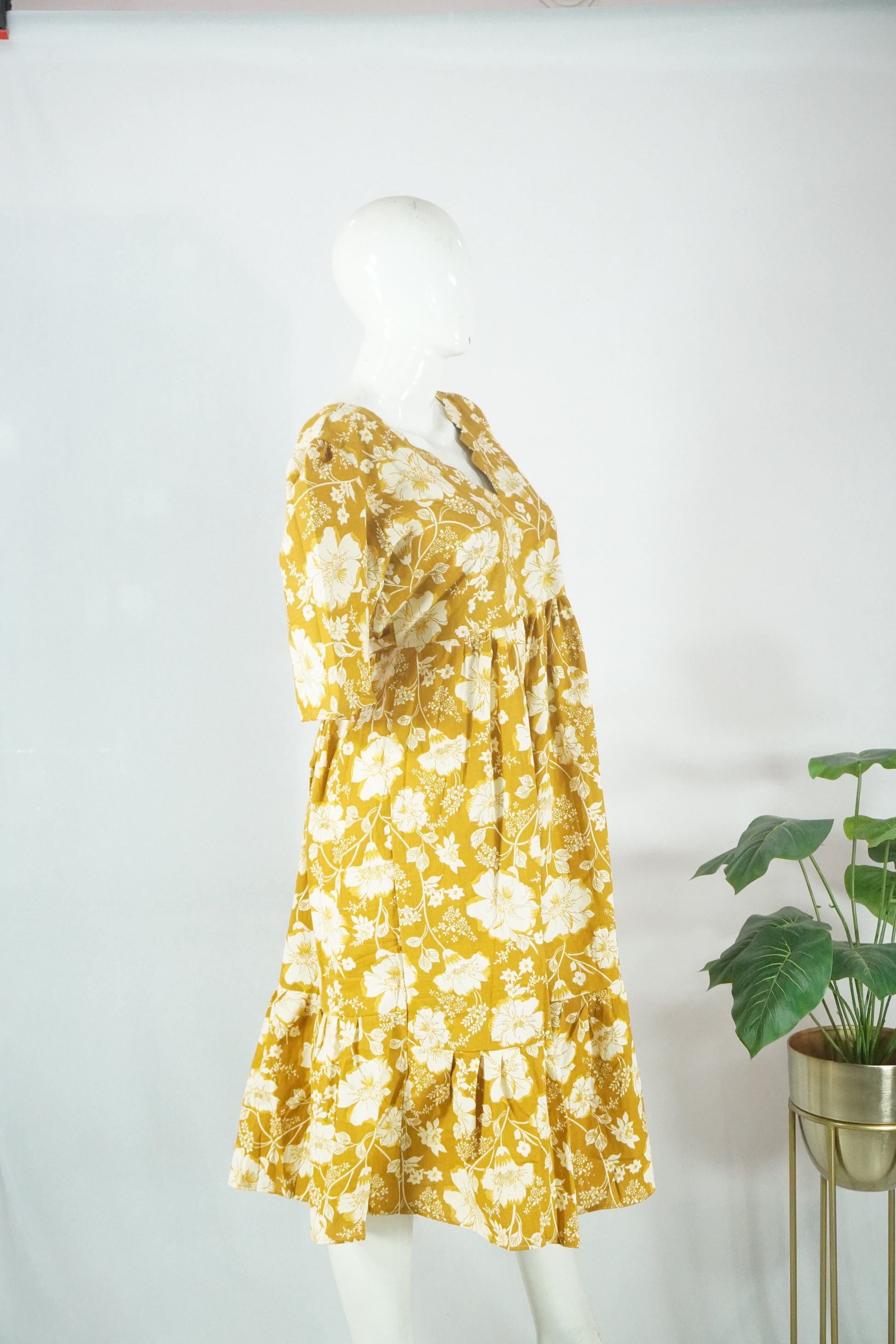 Jyothi Cotton Scallop Neck Frill Frock Crafted from premium Jyothi cotton fabric, this frock combines comfort with elegant design. The scallop neck detailing and delicate frill accents create a refined silhouette perfect for everyday wear. With generous proportions—44" length and width with 13" hand length—it offers a relaxed, flattering fit. The scallop neckline measures 7" for an ideal neckline depth. Machine washable for convenient care, this piece delivers both durability and style in a breathable cotton construction ideal for warm climates.